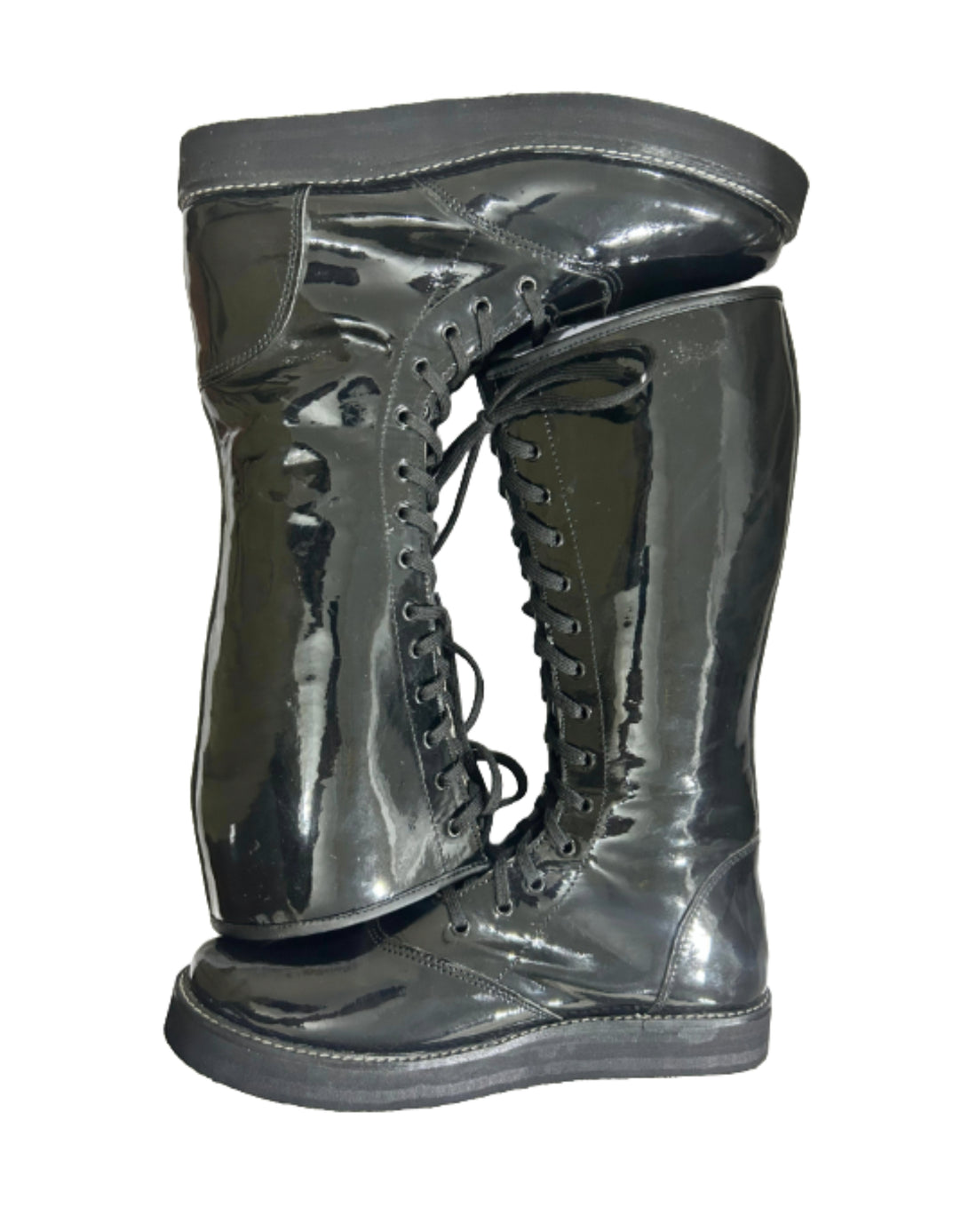 Premium Handgemaakte Pro Stoeistewels – Swart Patent Blink Kunsleer Stap die kryt in met selfvertroue...