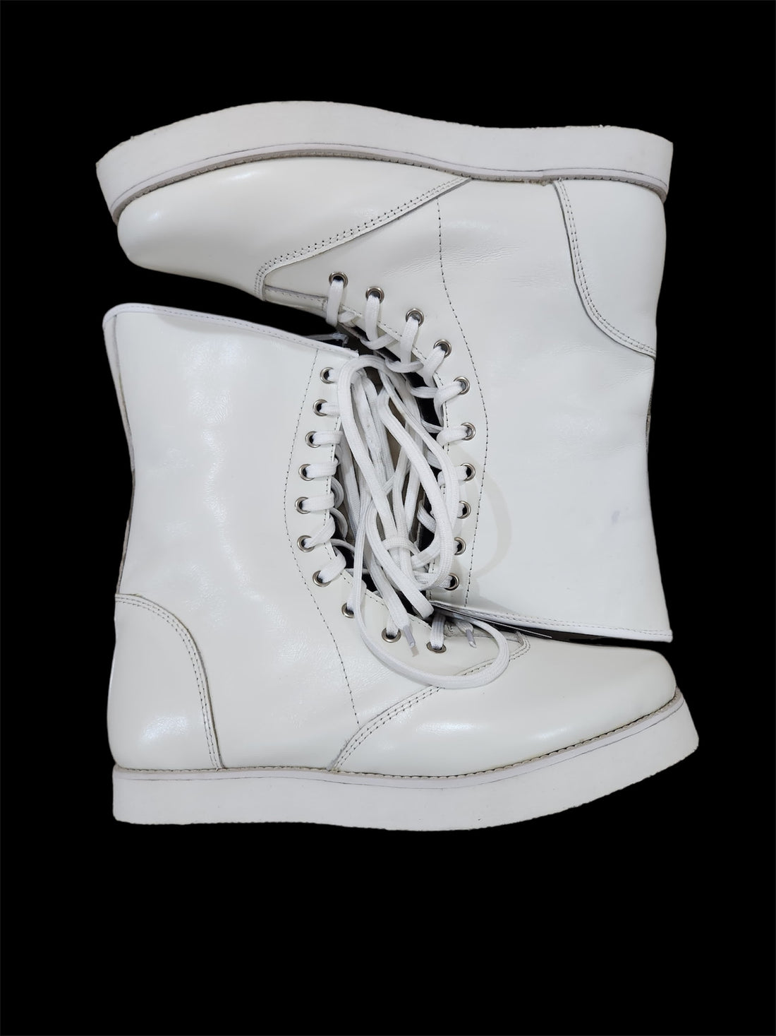 Premium Handgemaakte Pro Stoeistewels – Wit met bekende stoeierstyl Stap die kryt in met selfvertroue...