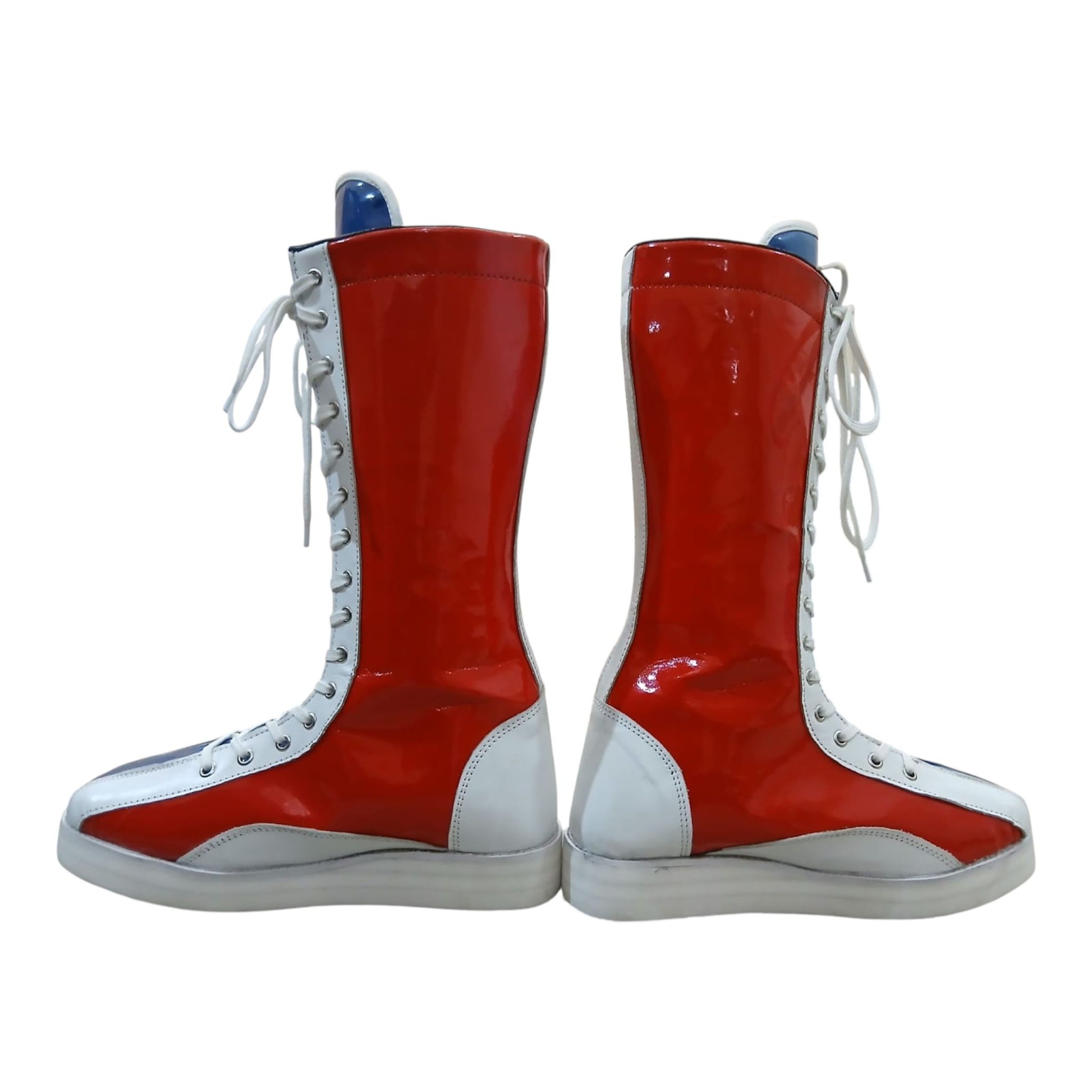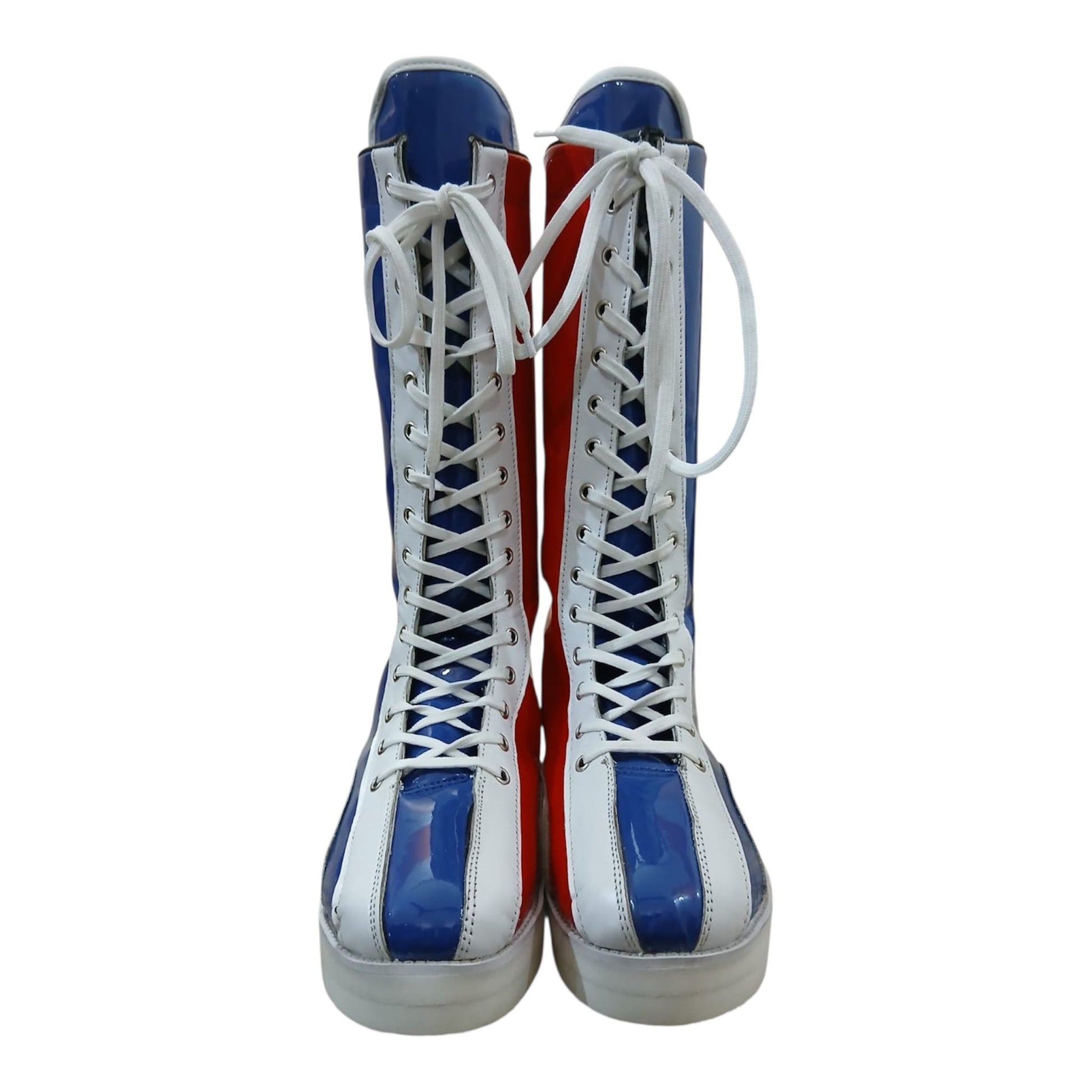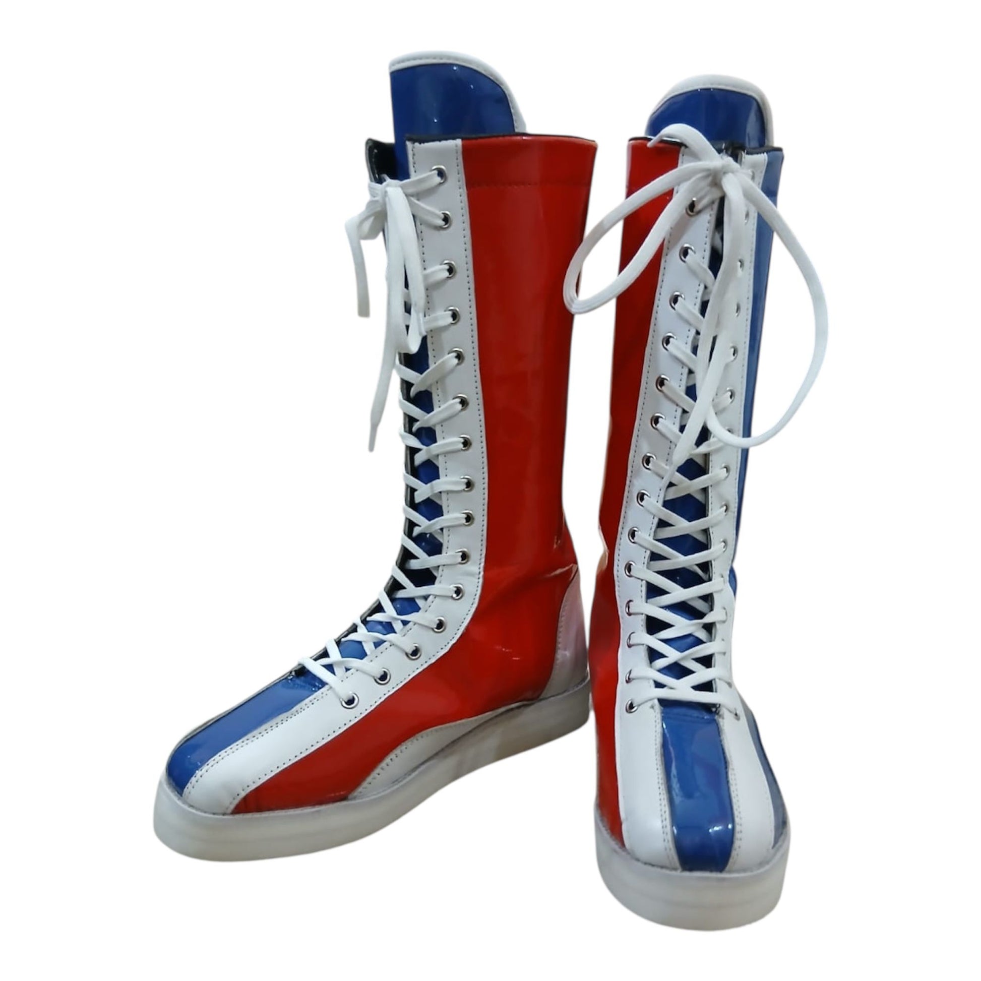 Hierdie handgemaakte stoeistewels is vervaardig van 100% oorspronklike leer, wat premium gehalte, duursaamheid en 'n slanke hoogglans-afwerking bied wat onmiddellik uitstaan. Geïnspireer deur die legendariese Klassieke Britse stoei-geïnspireerde stewels – bekend as The Bulldog-styl stoeistewels – vang hierdie stewels dieselfde vreeslose energie en ikoniese rooi, wit en blou gees vas.