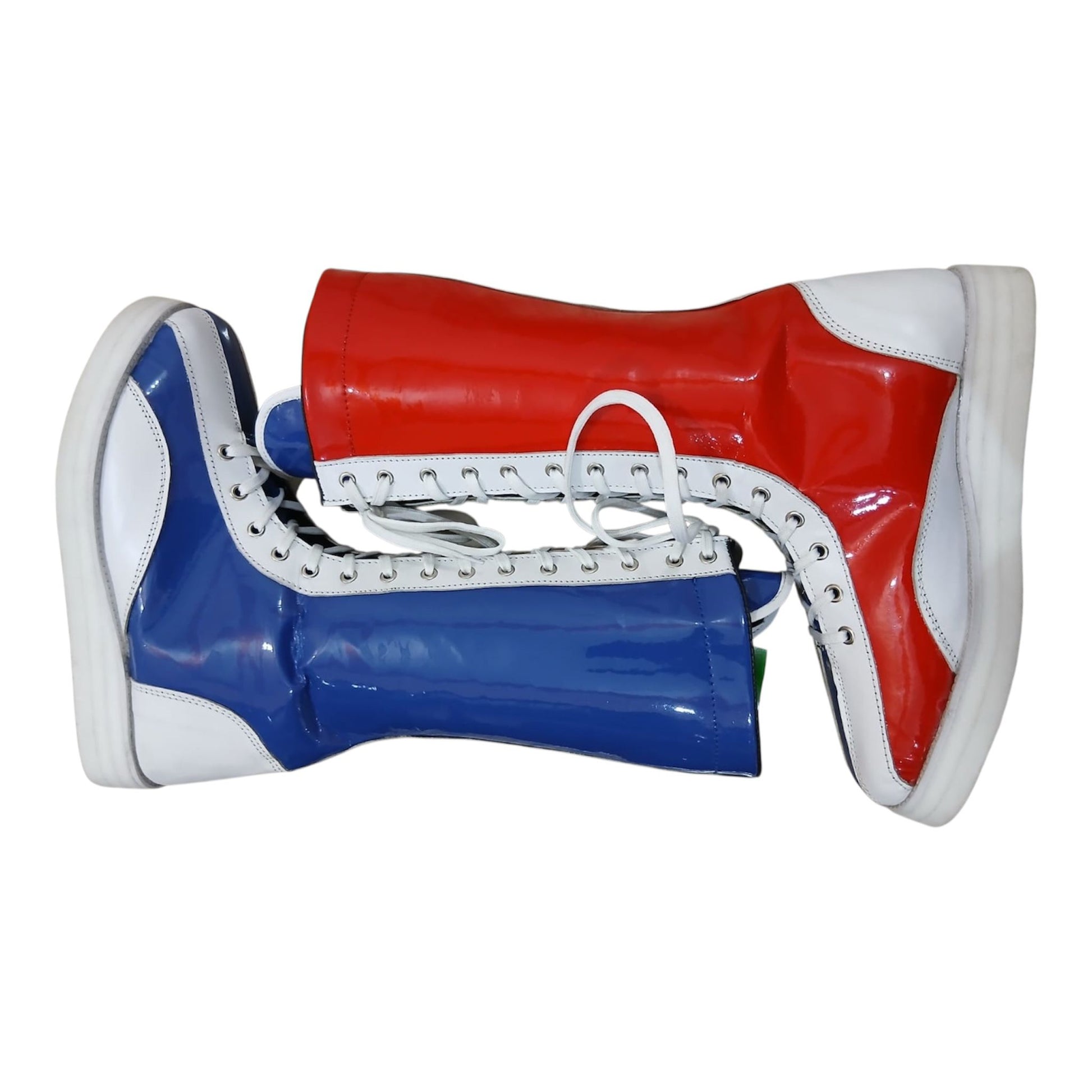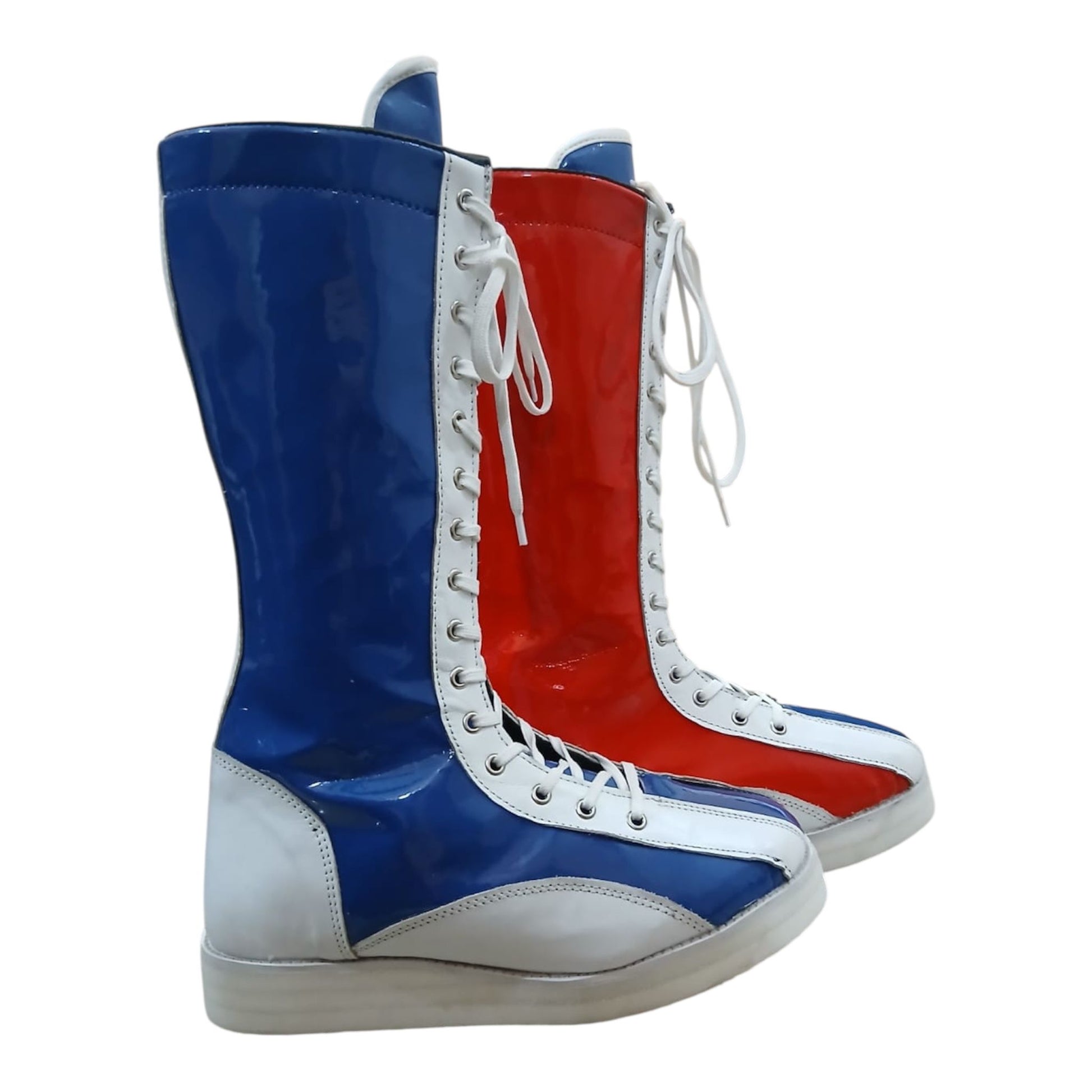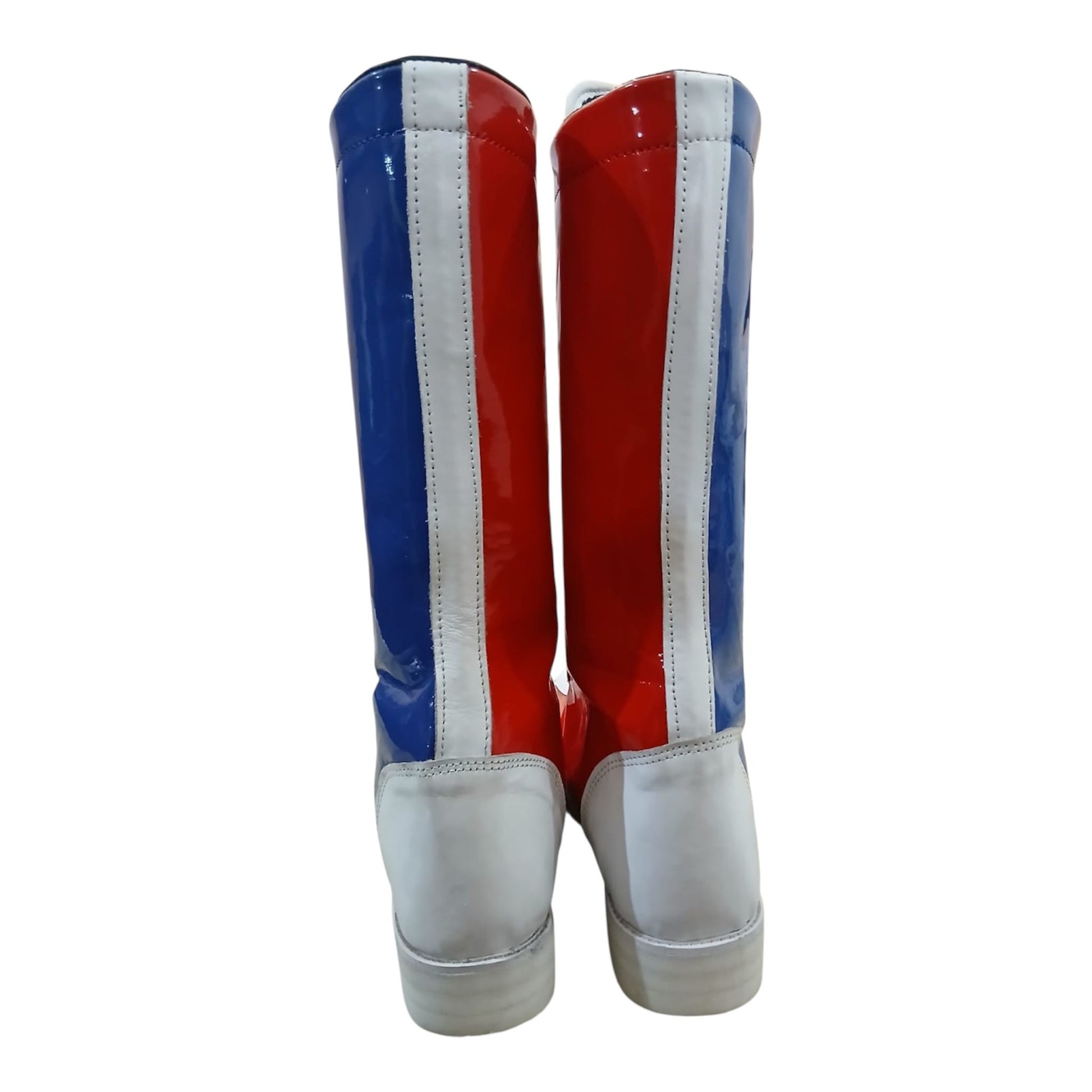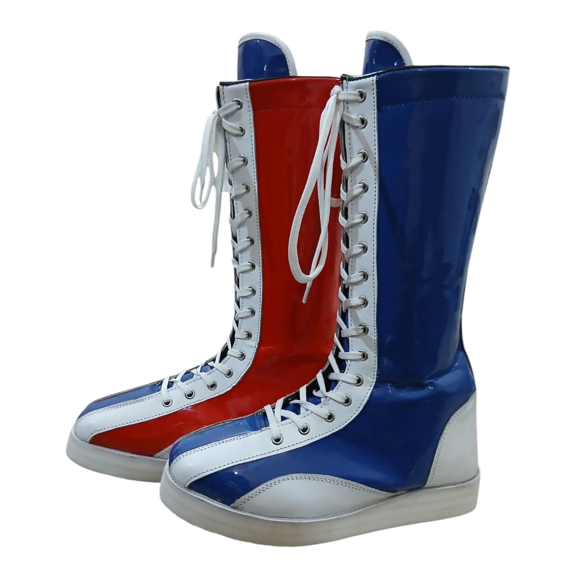 Hierdie handgemaakte stoeistewels is vervaardig van 100% oorspronklike leer, wat premium gehalte, duursaamheid en 'n slanke hoogglans-afwerking bied wat onmiddellik uitstaan. Geïnspireer deur die legendariese Klassieke Britse stoei-geïnspireerde stewels – bekend as The Bulldog-styl stoeistewels – vang hierdie stewels dieselfde vreeslose energie en ikoniese rooi, wit en blou gees vas.