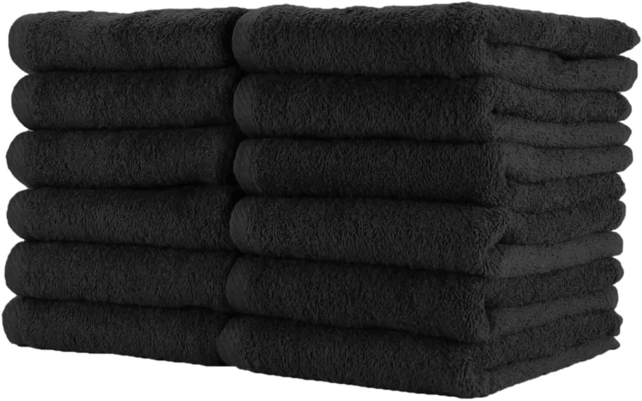 Bleach Proof Salon Towels - Pack of 12 - Highly Absorbent, 100% Cotton, Quick Dry Spa Face Towel for Hair Stylist, Barber, Pedicure, and Esthetician, 16 x 29 in, Black