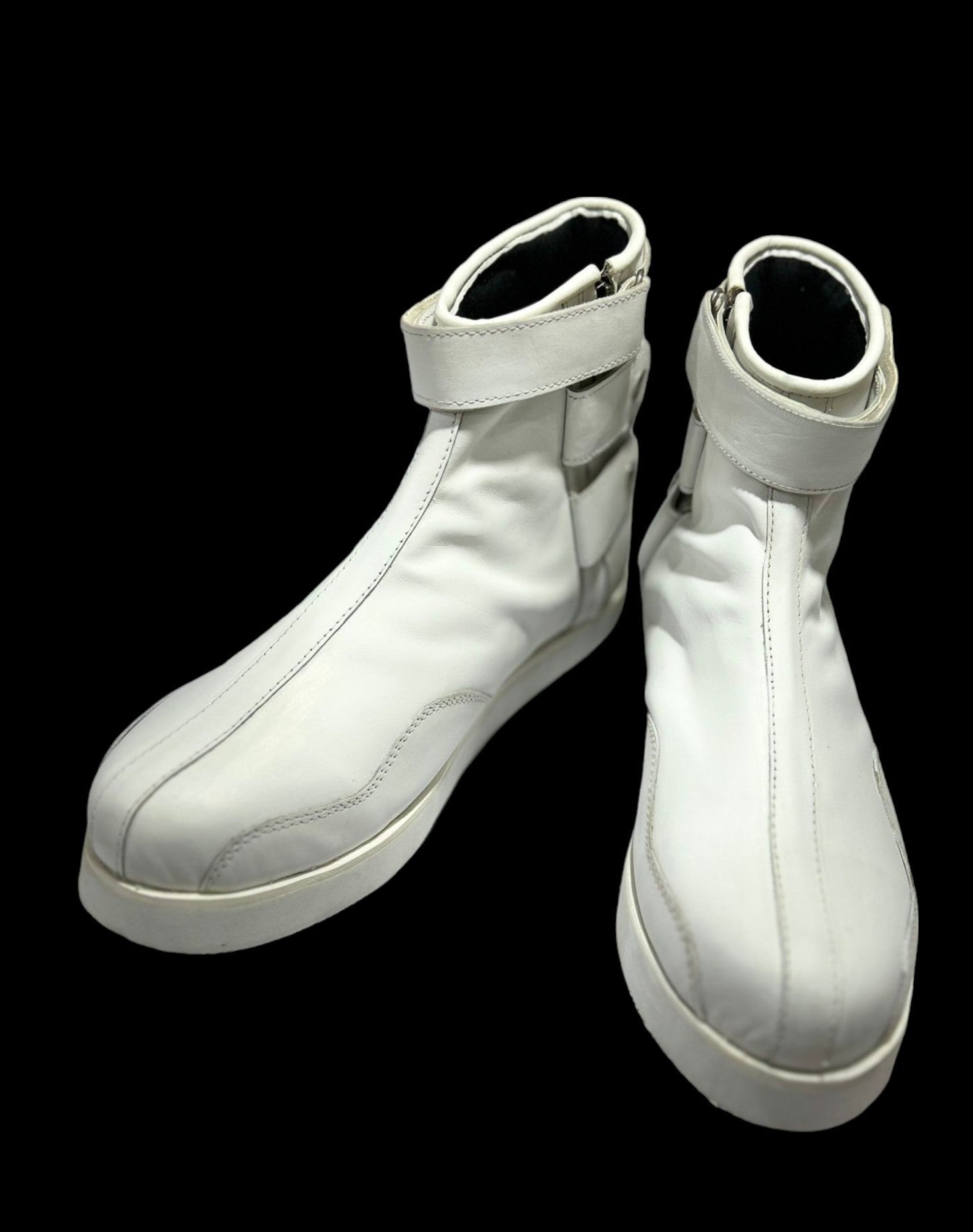 Handmade Professional Wrestling Boots, Low Cut, 100% Original leather, Zip Closure, Hook & Loop Style, Handmade, White Color