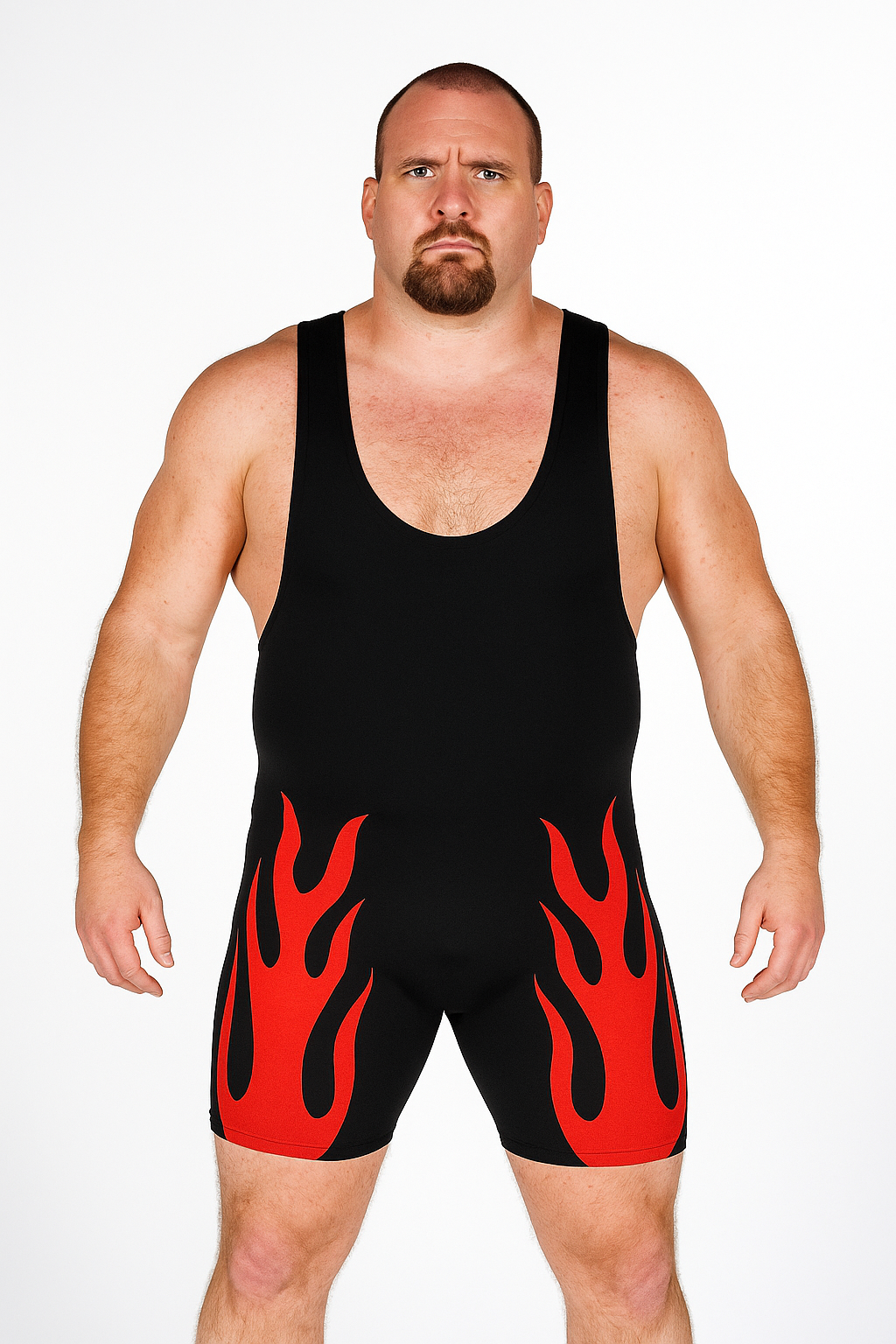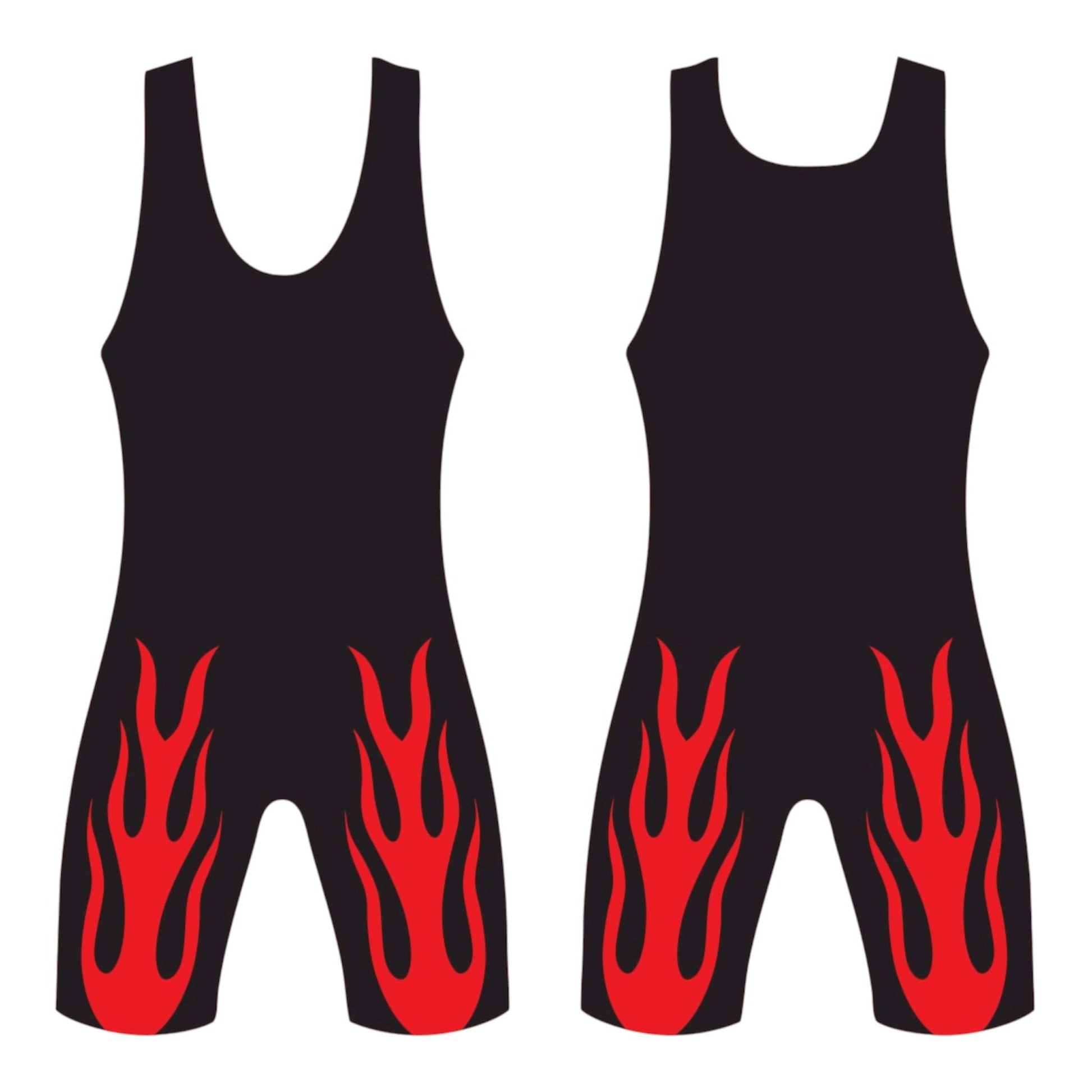 Wrestling Singlet, Stretchable, Red Fire Style, Customized Colors,